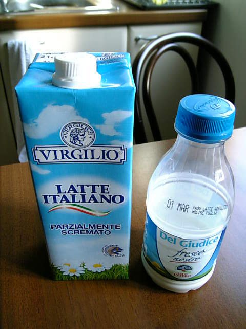 左は長期保存可能なラッテ(牛乳)。