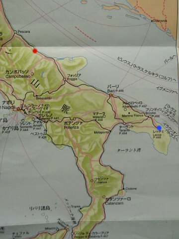 赤丸がわが町Vasto(ヴァスト)、青丸Lecce(レッチェ)で