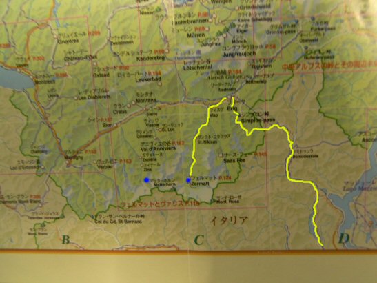 Zermatt(正確にはSion)へはDomodossolaから普通の道でIselle、Simplon、Brigを使ってました。