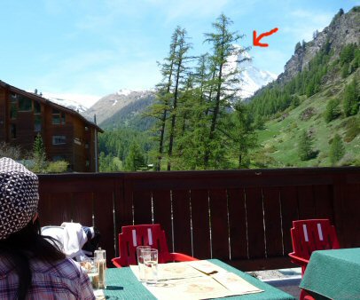 マッターホルンを眺めながらお茶ができる。