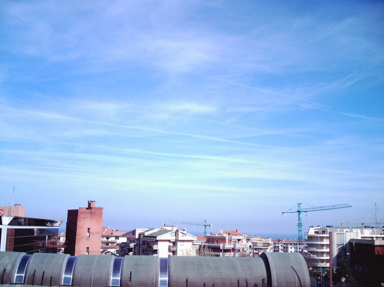 今日の空は、春らしい、折り目のいっぱい付いた淡い色の空。