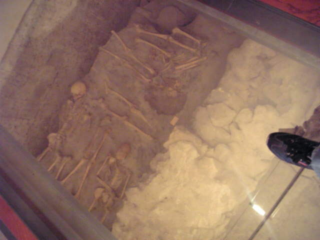 総ガラス張りの床の下にはお墓のような石の発掘跡。