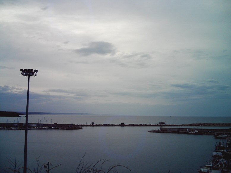 ・・・港は曇ってて、夕焼けも見れず。