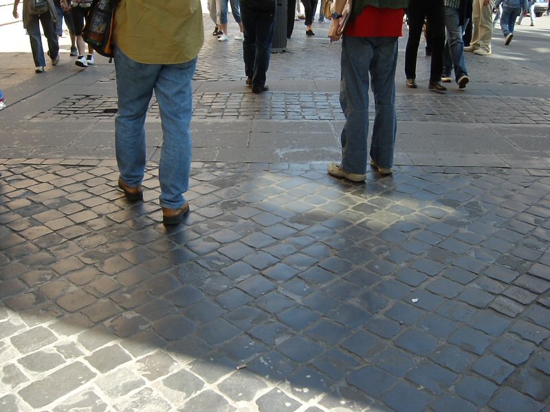 ローマの街中の歩道は昔からの石畳。