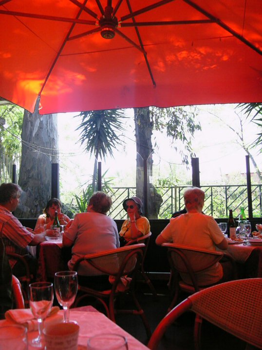 (店のパラソルが真っ赤なため、反射して全体的に赤い・・・)