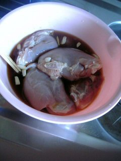 最初に作ったタレにトリを漬け込む。