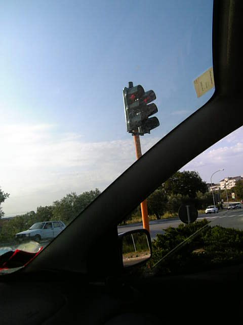 停止線で停まると丁度ピラーで見えない信号。
