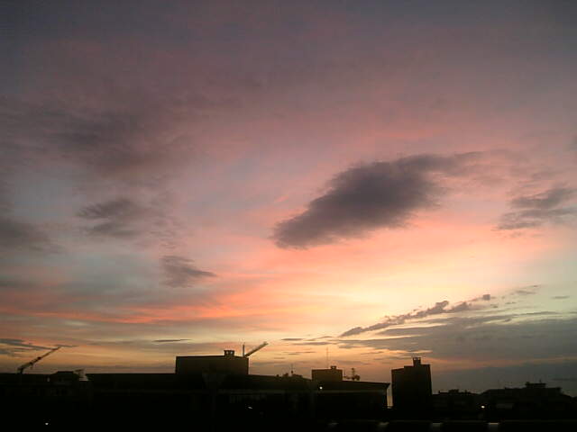 こんにちわ。一つの空に何色もの色が混じり合ってとても素敵な空ですね。なんか神秘的で好き。それと何分か前に蚊に刺されて、腕がだんだん痒くなってなんか神秘的な気持ちです。