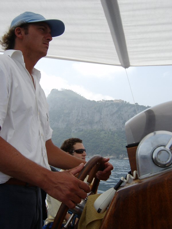 待機している「青の洞窟」行きの中型ボートの運転手。