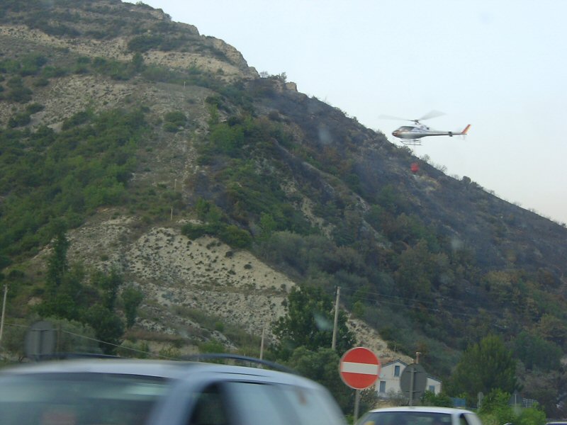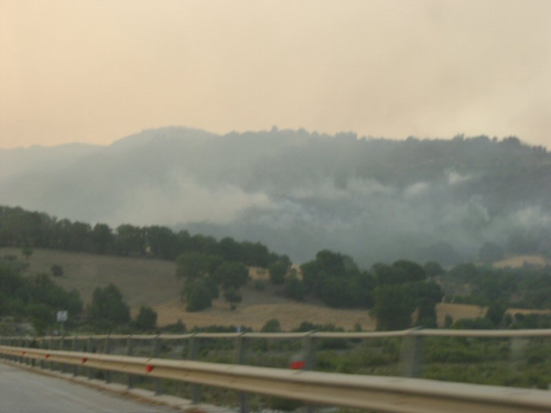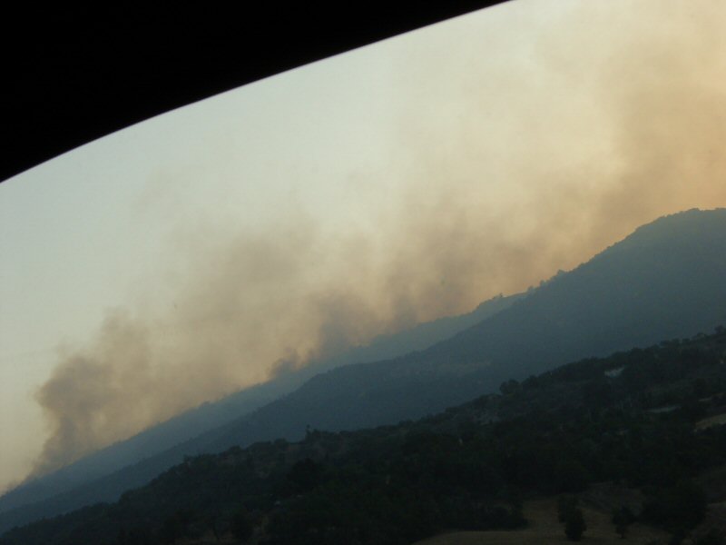 朝8時頃、行きの高速道路上で山火事を発見。