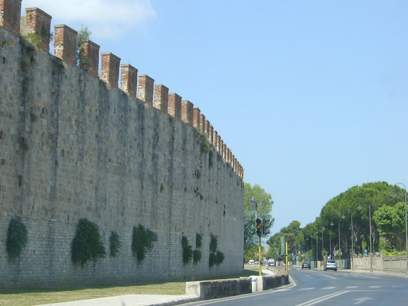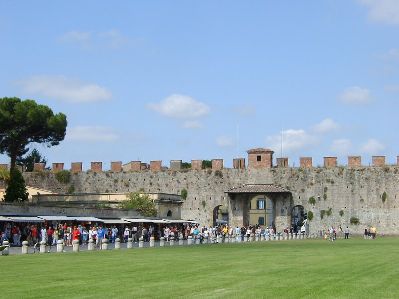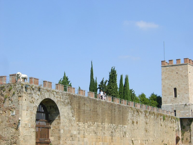 斜塔や教会のこのエリアは城壁にぐるりと囲まれている。