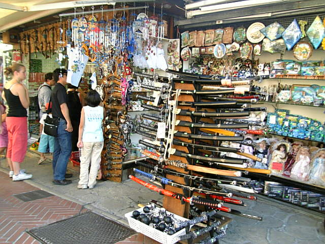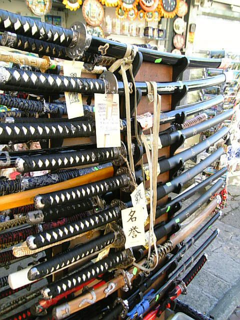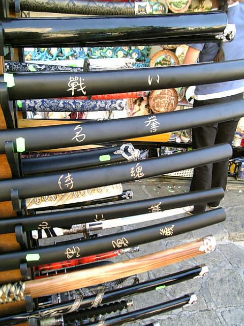 映画「キル・ビル」の影響か、日本刀のレプリカがたくさんあった。