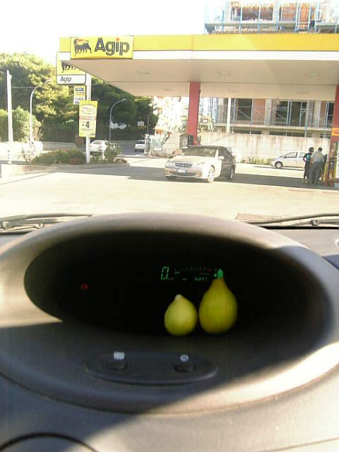 乗り込むと、小さなイチジクがメーターの前にちょこんと座っていた。