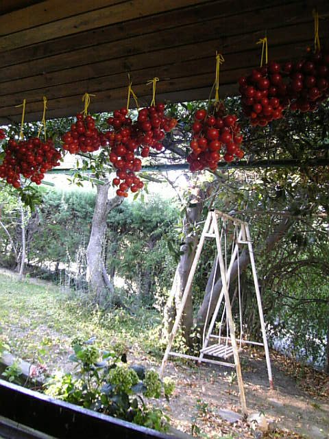 そしてそんなプチトマトの一部は、ポーチの軒下で