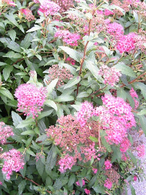 待ってる列の脇に、ピンクのコデマリのような可憐な花。