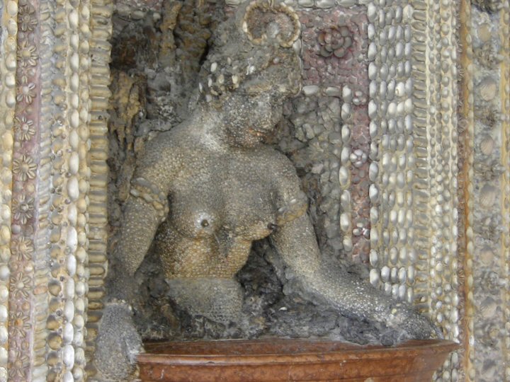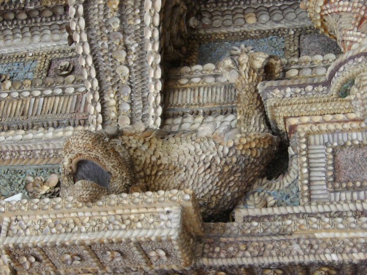 ふと天井を見上げると、あんなところにも貝が飾られている!!