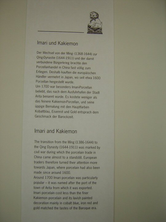 展示コーナーには王家の宝物か、柿右衛門が飾ってあった。