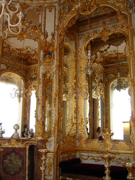 ここは「鏡の間」のようで、一面鏡が貼られている。