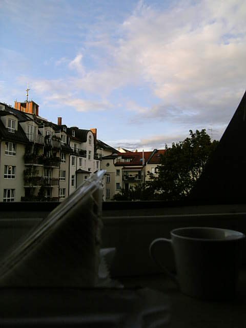 キッチンで淹れたコーヒーを窓に座って食べた。