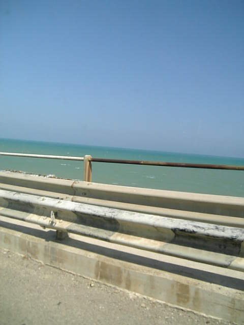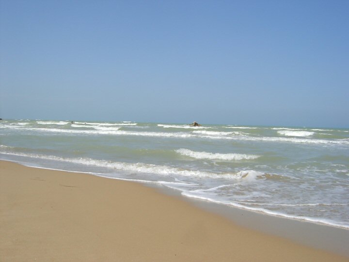 波が高くて風が強い遠浅の海岸は砂を巻き上げているんだろう。