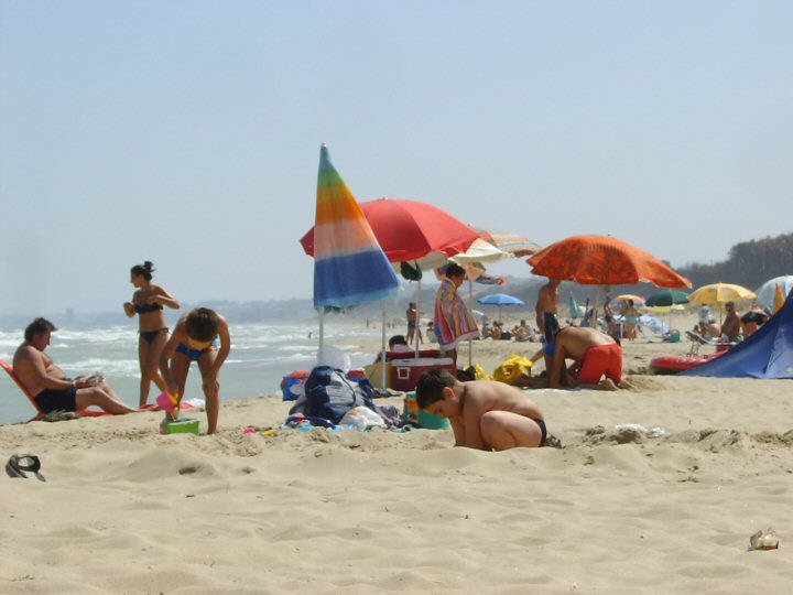 イタリア人は海に泳ぎに来るんじゃなくて、喋り&焼きに来るんだった。