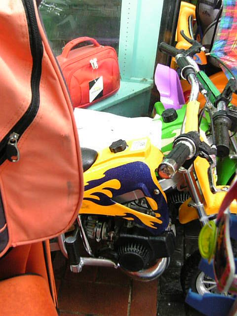写りが悪いが子供用おもちゃのバイク。しかもオフロードっぽい。