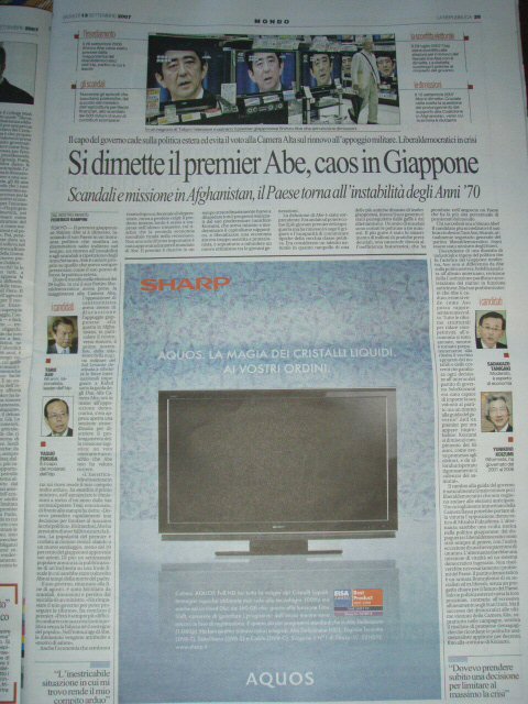 そして今見た日本のニュースでは「アベ総理大臣、入院」。