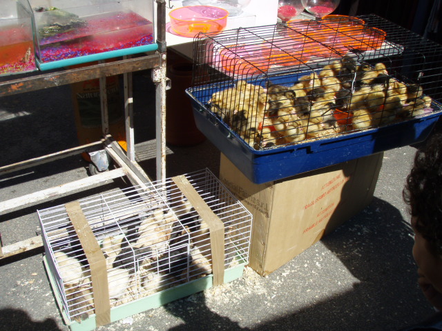 小鳥(インコ)やハムスター、亀や金魚も売られていた。