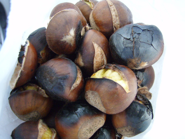焼き栗!おいしそうだね、 昔イギリスで食べた焼き栗が驚くほど美味しくて記憶に残ってるよ。 イタリアのクリはもっとおいしいんだろうね!