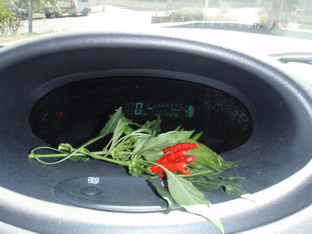 ガソリンスタンドの脇に生い茂るペペロンチーノ達と