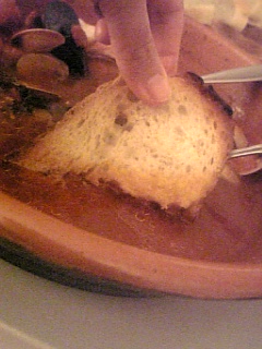 一緒に運ばれてきたカリっと焼いたパンを