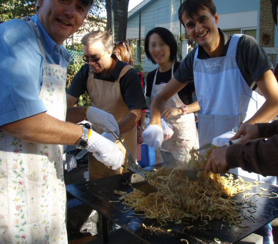 ワタシたち3年生父兄は2年生父兄と一緒に焼きそばを焼き