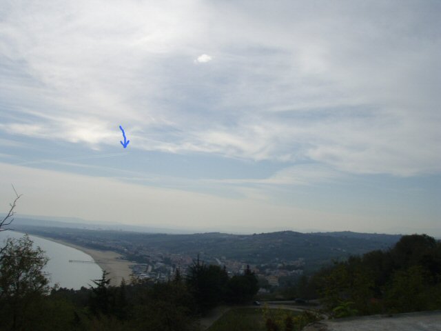 つかあのふたつの飛行機雲(青矢印)スゴイ。