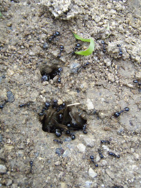 雨の小休止にデカいアリとアリの巣を発見。