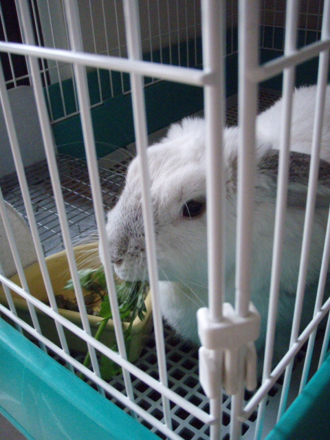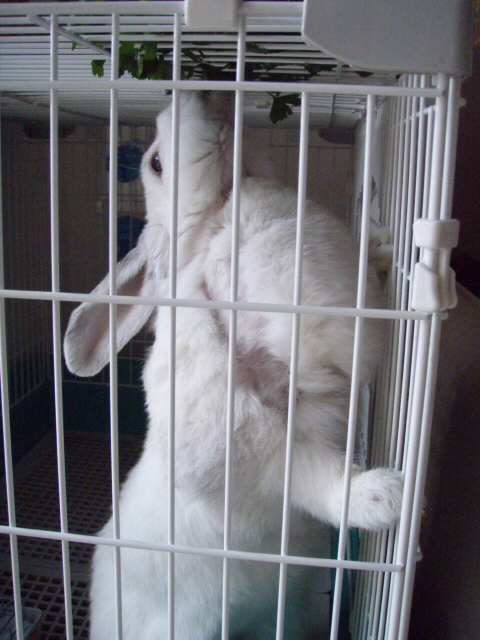 大好物のイタリアンパセリをケージ上部に載せて食べさせてみた。