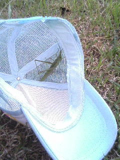 不満そうな顔で「走って疲れた。もうバッタを捕まえるからいい。」