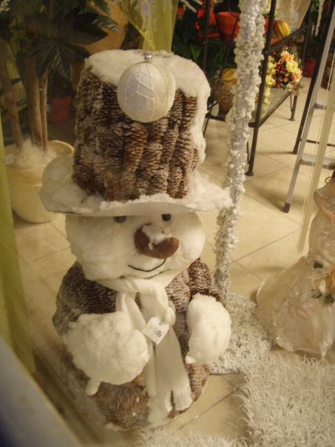 この雪だるま、よーく見たら松ぼっくりでできて