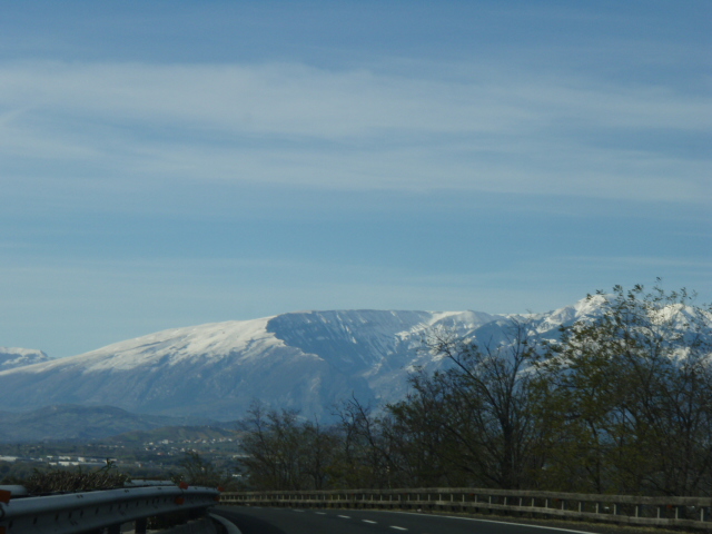 こないだアマトリーチェ行った時にも見たけどもう山の上には雪ですねぇ~♪