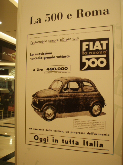 500のポスターの490000リラの価格に目がいきました。あの時代の流行歌で一月に1000リラって言う歌があったんですって。500は月給にして49ヶ月分・・