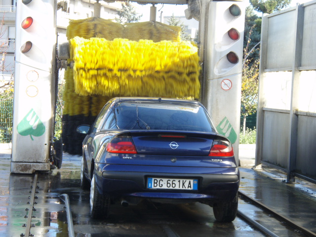 ローマには昨今セルフ洗車できるところが結構あります。全行程1分半X4で2ユーロ。私は5ユーロで11枚のコイン買ってほぼ毎週6分間ダイエット(腕力使うけど楽しい)やってます。