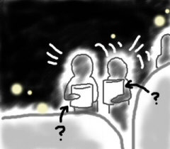そのうち見に行ったと思われる人々が、手に白い何かを持って戻ってきた。