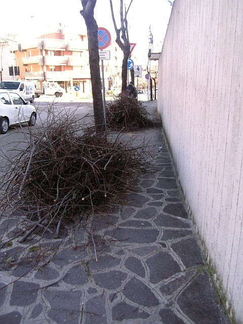 歩道を歩くヒトはこの枝の山を避けて車道を歩く始末。