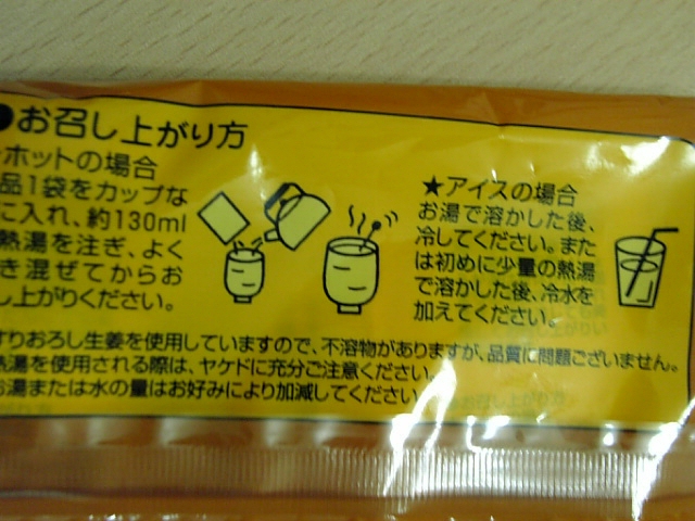 生姜湯・・砂糖とくず成分で体がべたべたになりますよ。