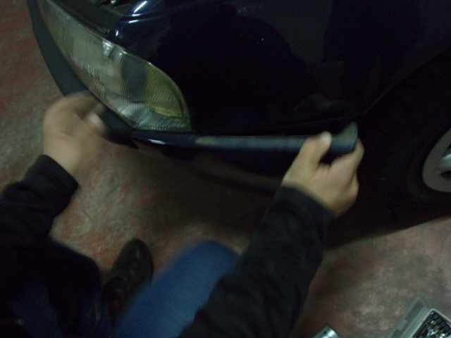 (日本車と違ってとってもめんどくさそうだ・・・)バンパーをひっぱるも