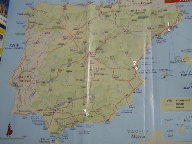 ②バレンシア地方~③アンダルシア地方のグラナダ(目的地)までの
