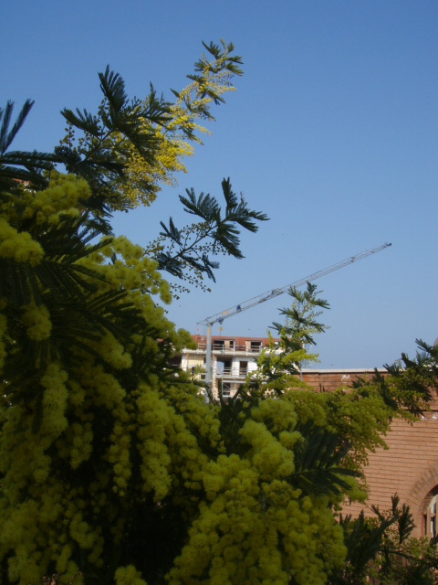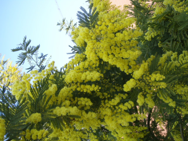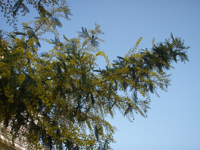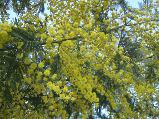 いよいよミモザの黄金の花があちこちで開花し始めた。