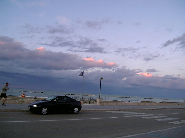 夕暮れ時のアドリア海は、表面が桃色で幻想的だった。