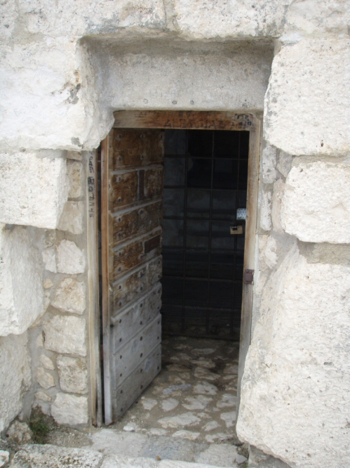 ナポリの城でも見たけど、内側に有利で外からは不利な穴の形状。