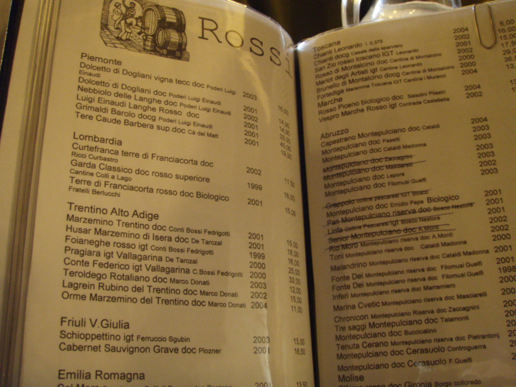 そしてワインの種類が本当に多く(画像はほんの一ページ、この他に