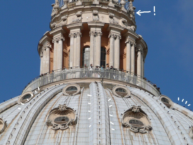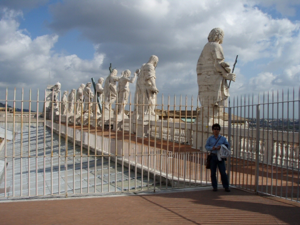 サン・ピエトロ広場からこの大聖堂を見上げると、頭上に聳え立つ聖人像。